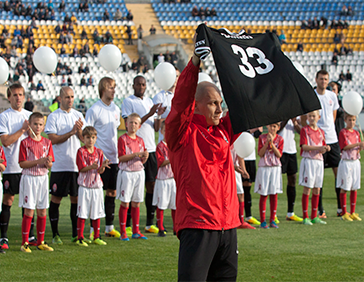Все футболисты вышли на футбольное поле стадиона «Авангард» в футболках с надписью «Белый 33».